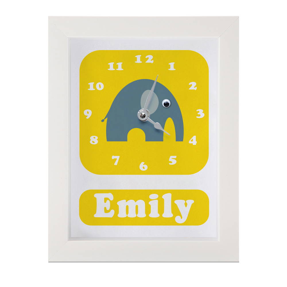 Personalised Children’s Elephant Clock with googly eyes! Simply choose a colour, include a name, and we’ll do the rest.